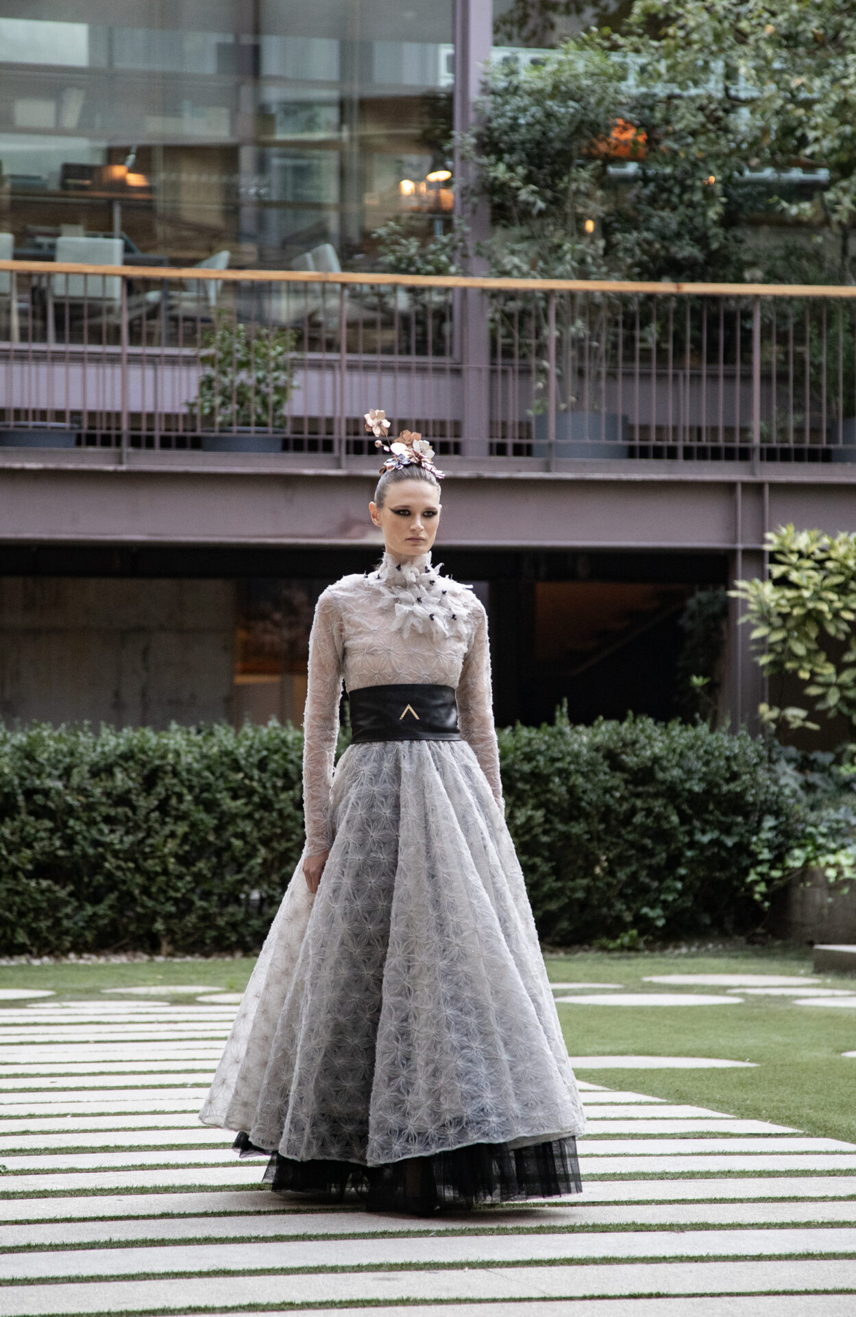 Pilar Dalbat rinde homenaje al acervo más puro de Granada, la Zambra, que enraizada en el folclore local como uno de los palos más emblemáticos del flamenco, aparece reinterpretada desde el universo contemporáneo de la diseñadora.