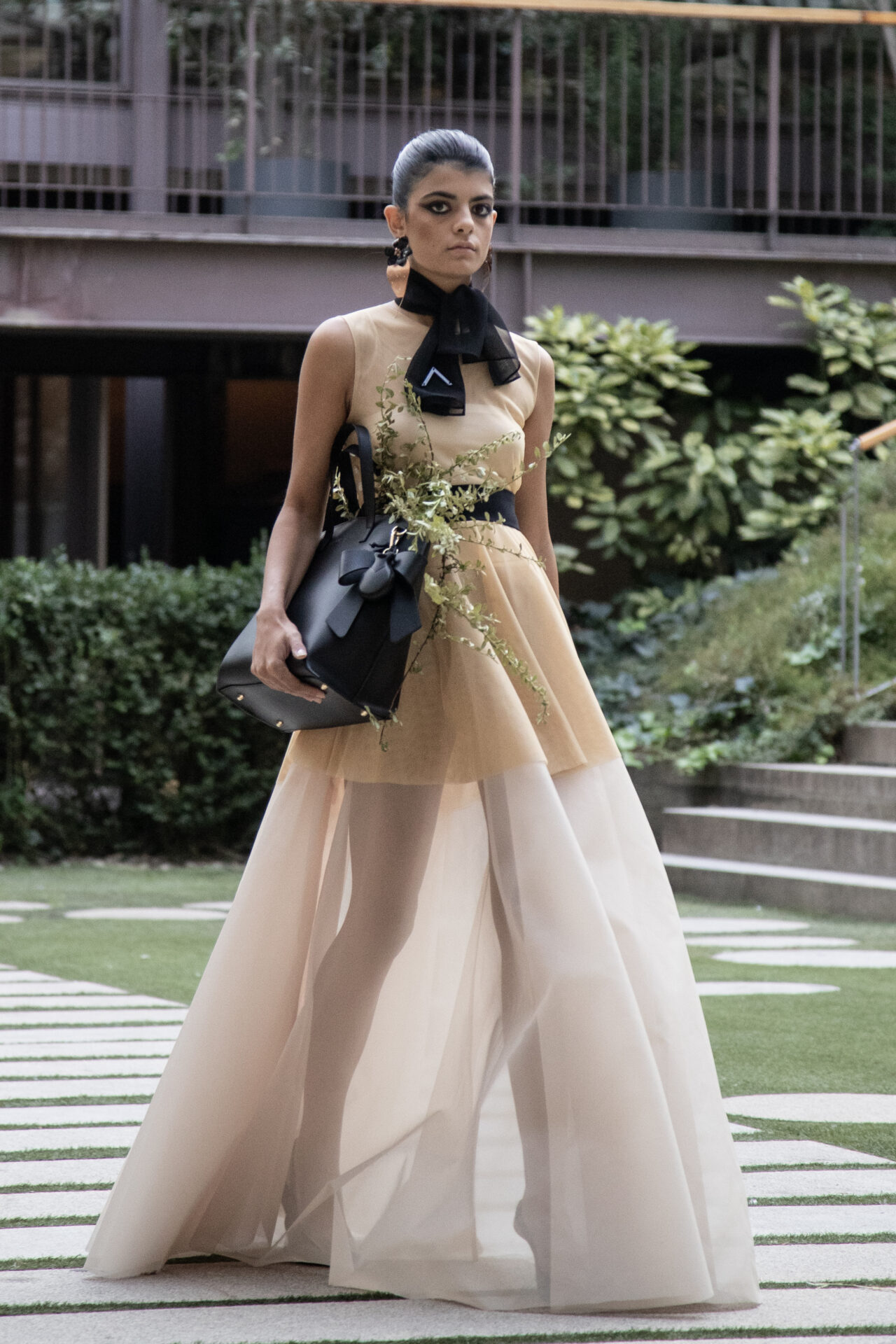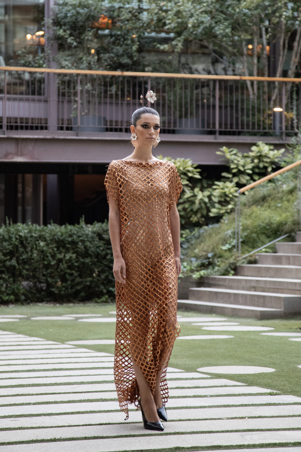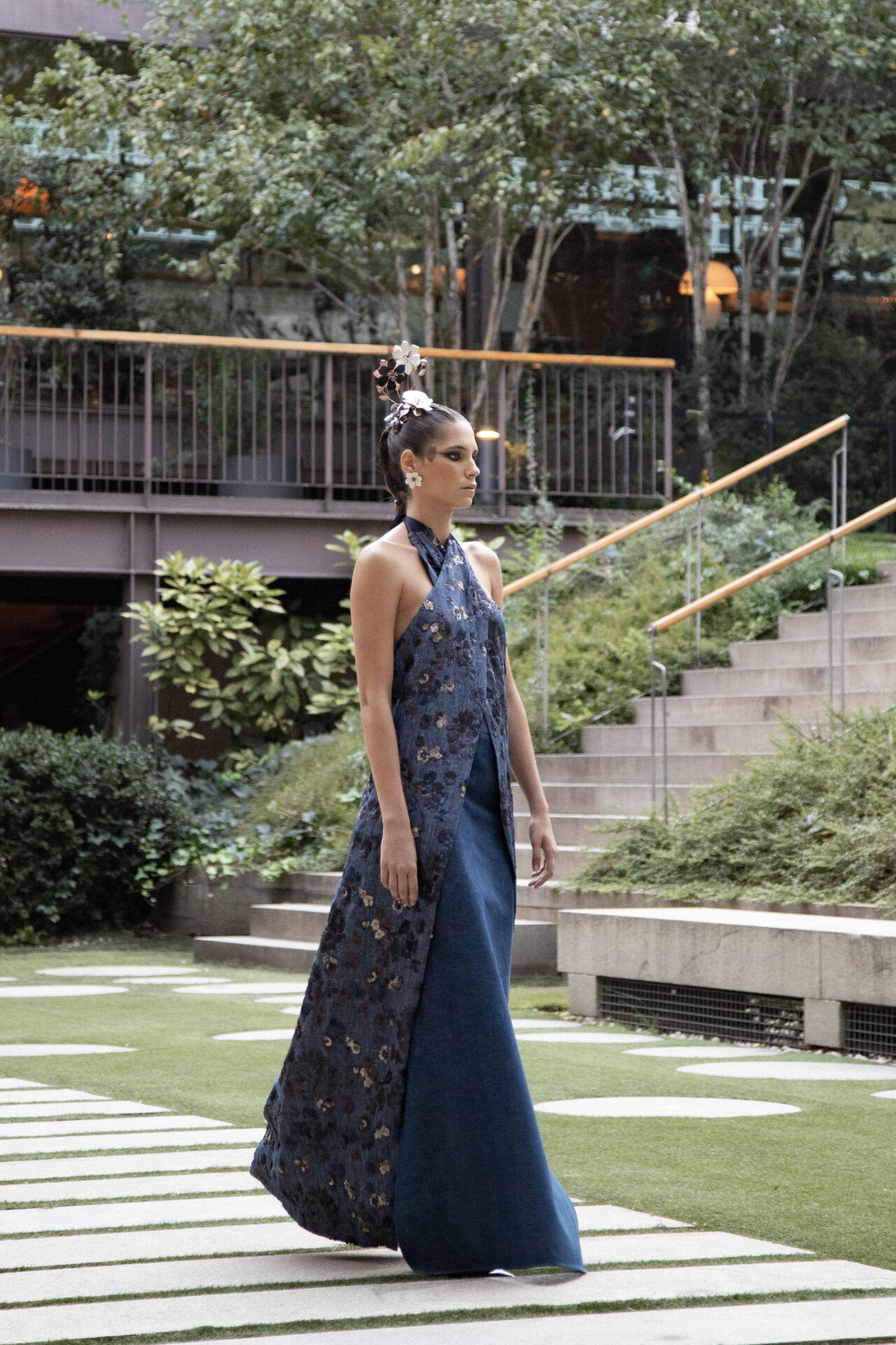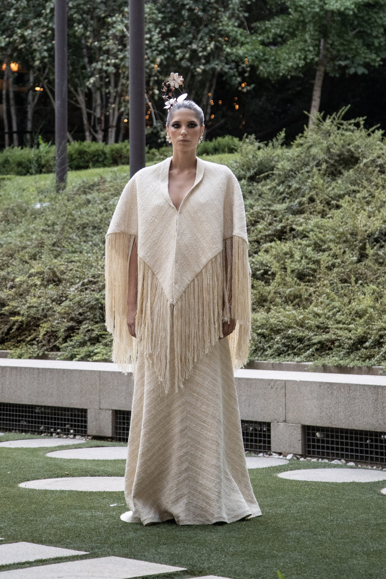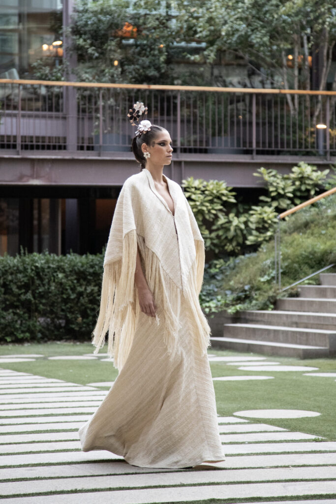La variedad y mezcla de tejidos nobles como la seda, el tul bordado, el hilo y el algodón cuajado de lentejuelas metalizadas. La marca vuelve a confiar en los talleres locales para la fabricación de sus tejidos alpujarreños 100% reciclados, originales y con carácter rústico. En esta ocasión, bordados al tono recuperan el clásico motivo del refajo andaluz tan presente en festividades, bailes populares y romerías, que converge con el uso de tejidos técnicos y metálicos, mediante los que introduce un contraste contemporáneo.